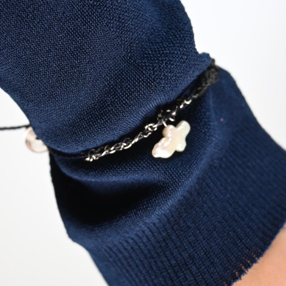コードのツヤと素材の自然な表情が手元に静かな存在感を与えます。