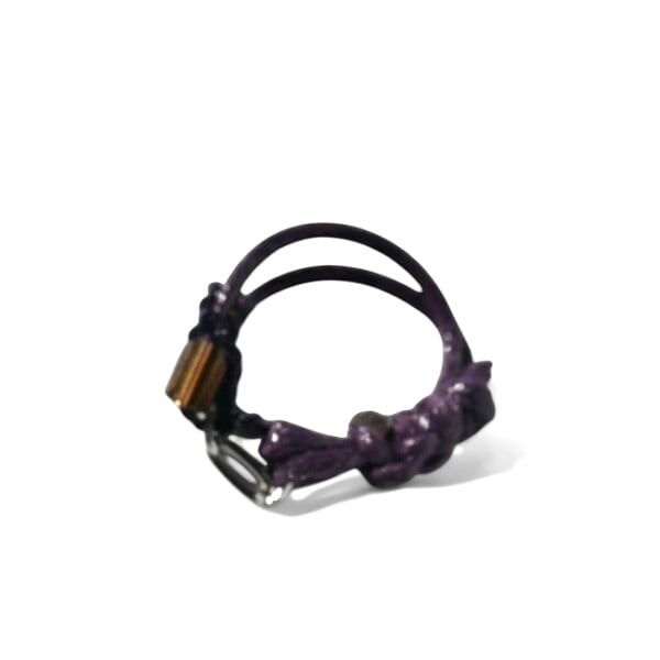 A hand-tied cord ring made from navy polyester cord and plastic cord,