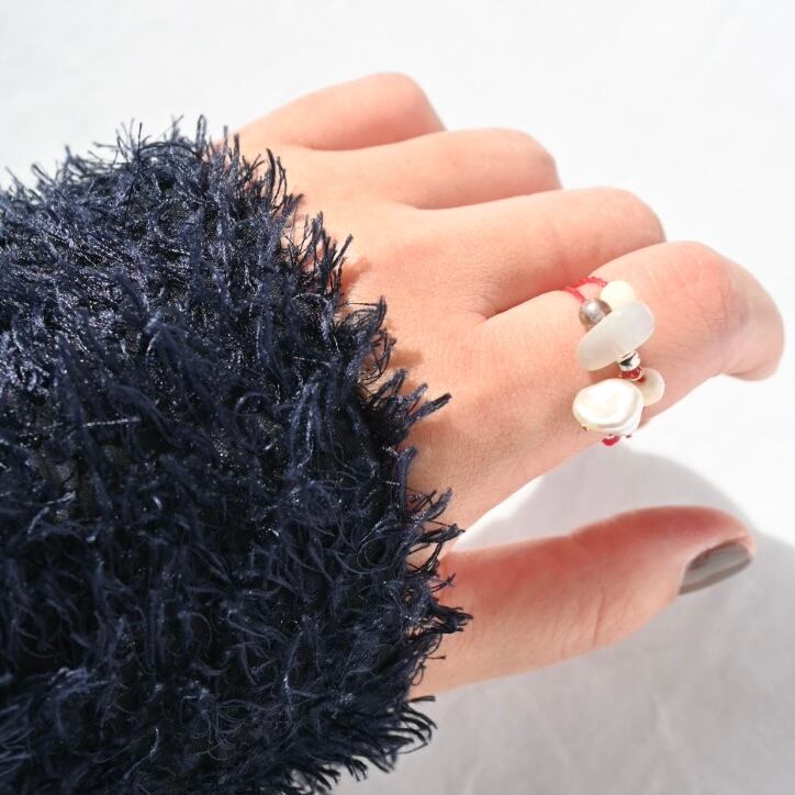 淡水パールや天然石、ボーンビーズを組み合わせたリング。