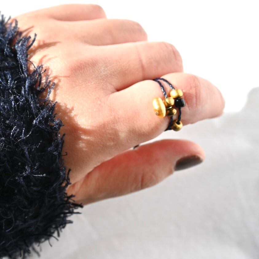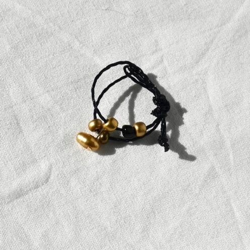 メタリックゴールドの淡水パールと塗装ガラスビーズを組み合わせたコードリング。