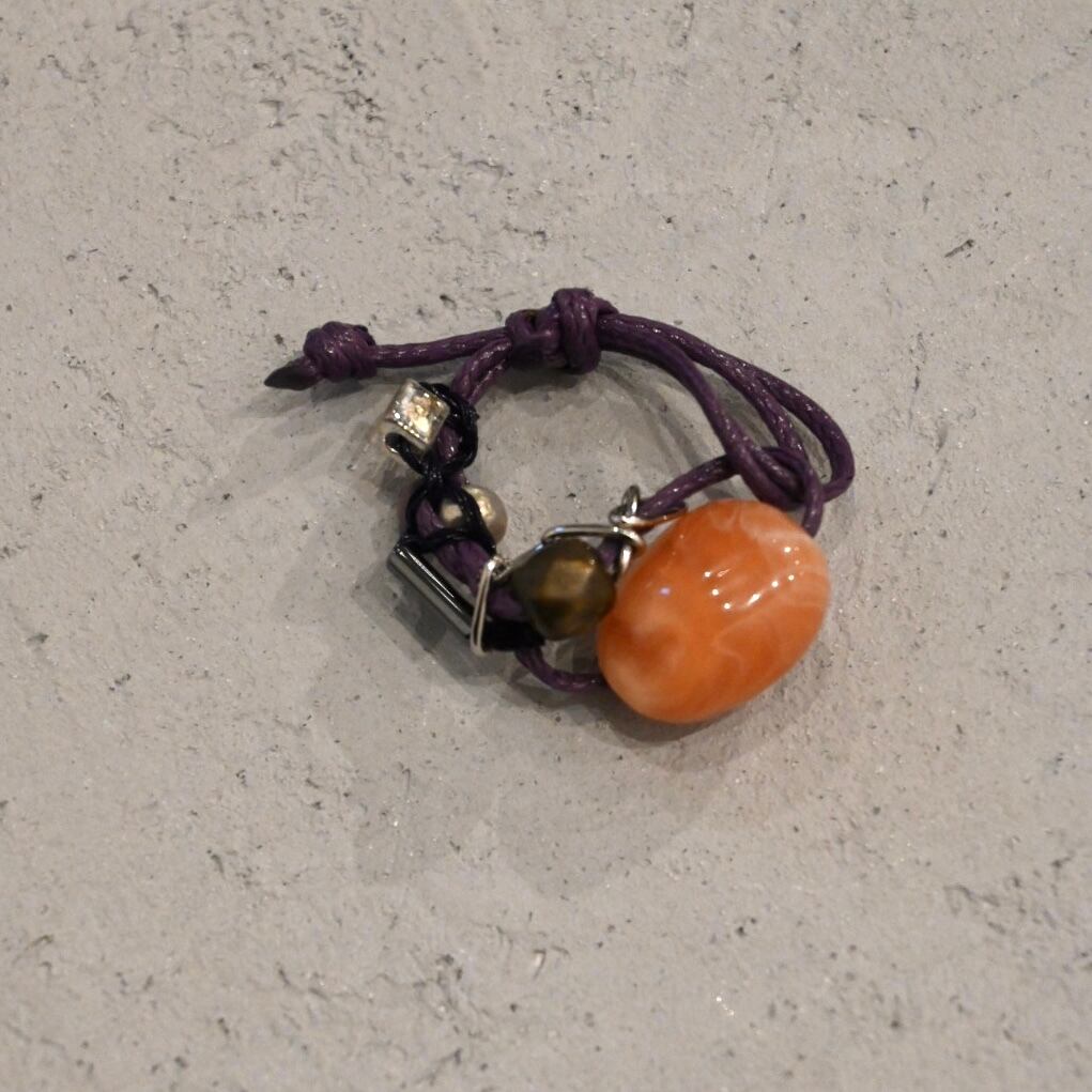 飴玉のようなテラコッタ色のビーズを主役にした、コードリング。