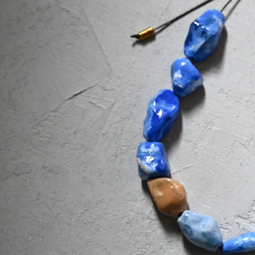 Hand-shaped stone powder clay forms are combined with a wax-coated cord,