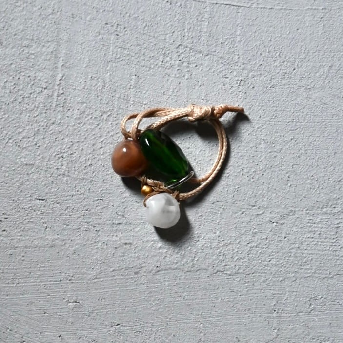 キャメル、グリーン、ブラウン系のパーツをミックスしたコードリング。