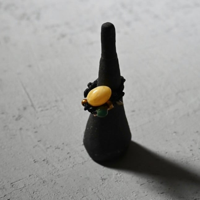 イエロー系のパーツをミックスしたコードリング。