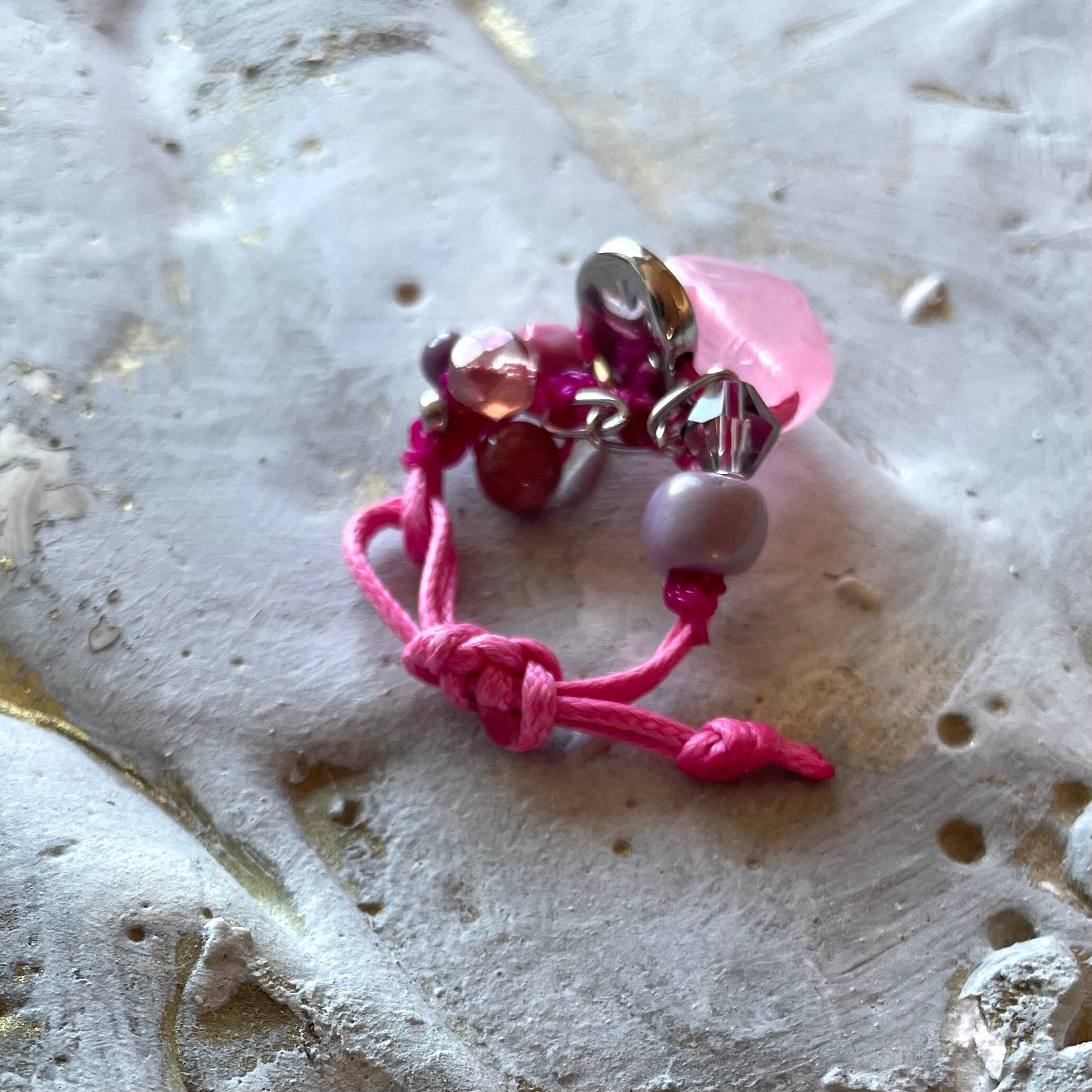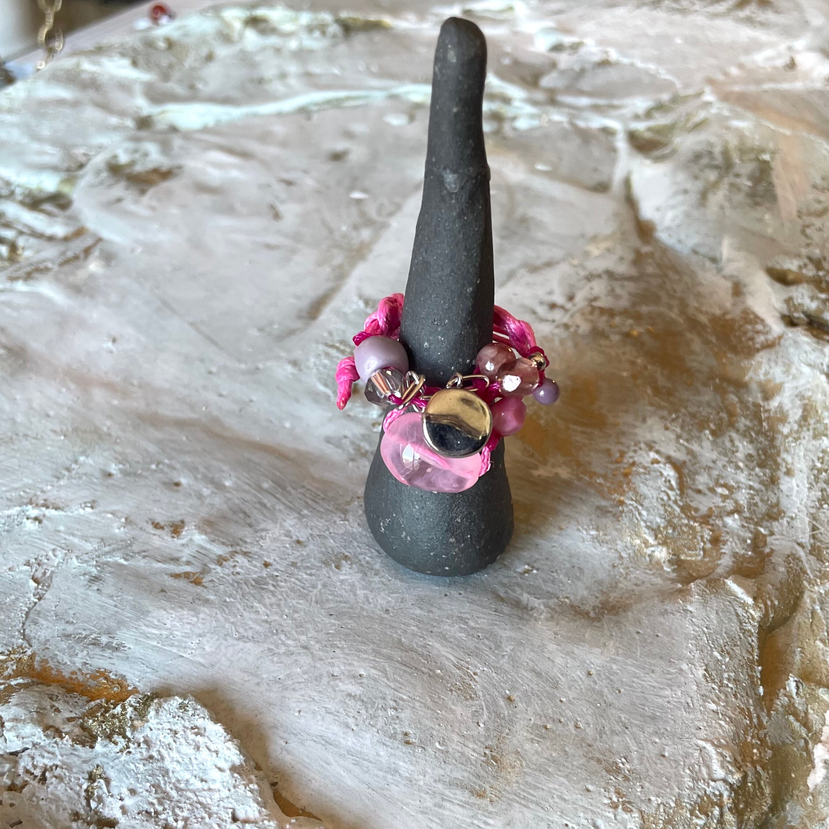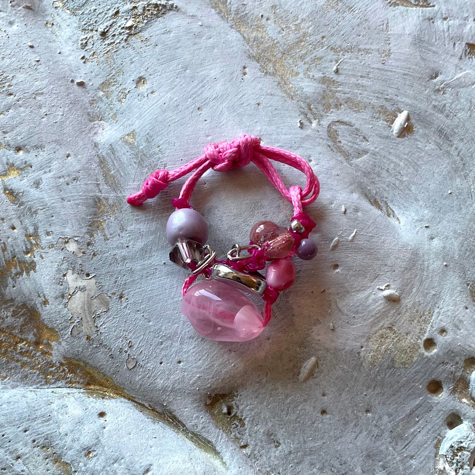 A cord ring featuring a mix of pink-toned parts.